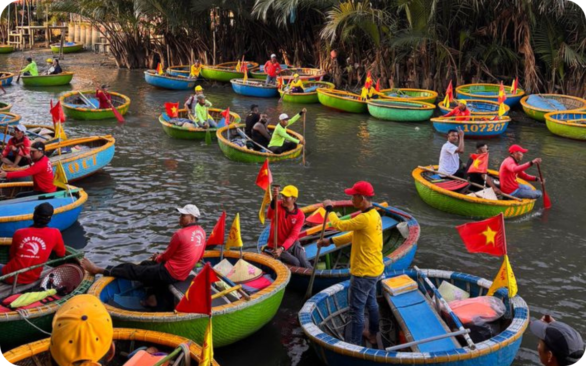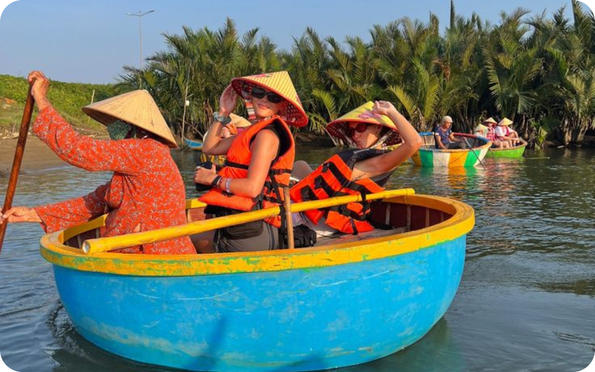 Experience basket boat rowing at Dung Coconut Boat Tour is an exciting, unique journey that is deeply rooted in local culture in the river region of Hoi An.